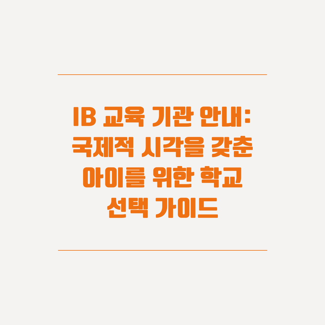 IB 교육 기관 안내: 국제적 시각을 갖춘 아이를 위한 학교 선택 가이드